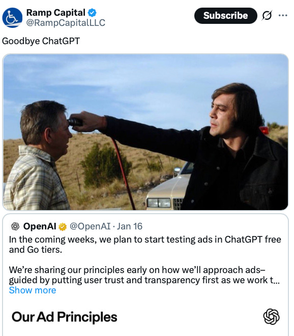 OpenAI announced they’re rolling out ads in ChatGPT starting early February, for free users and the $8/month Go plan. They’re starting small with a handful of advertisers, asking for less than $1M for a few weeks of testing.
