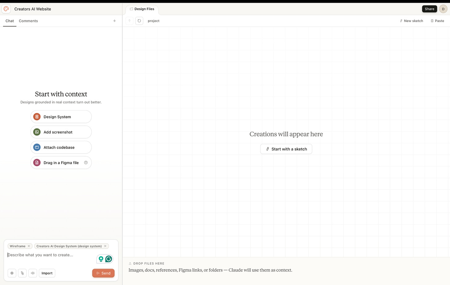 1. Design system ingestion. Point Claude at your codebase or design files during onboarding. It reads your colors, typography, components, and spacing rules, then applies them automatically to every project after that. Teams can maintain multiple design systems for sub-brands or campaigns. The single source of truth becomes your code, not a Figma library that drifts over time.