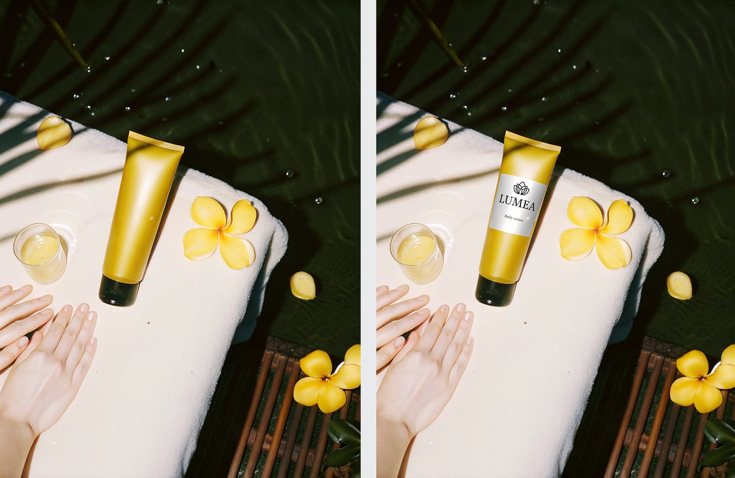 Upload your base: Take any photo of a bottle or packaging (I used the cream image above).