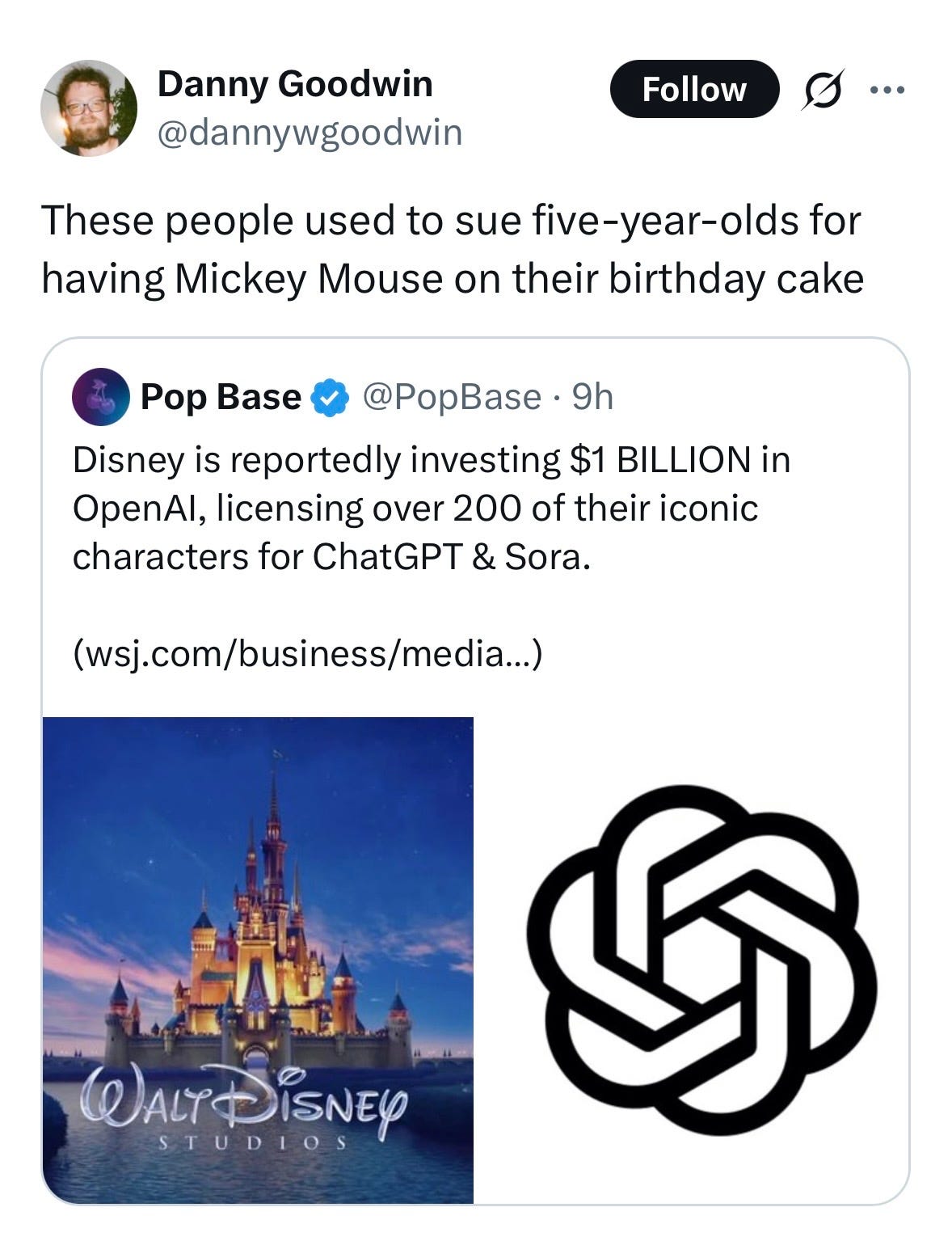 Disney struck a huge deal with OpenAI. We’re talking about a three-year partnership plus a $1B equity investment to bring its most famous characters to OpenAI’s Sora AI video generator.