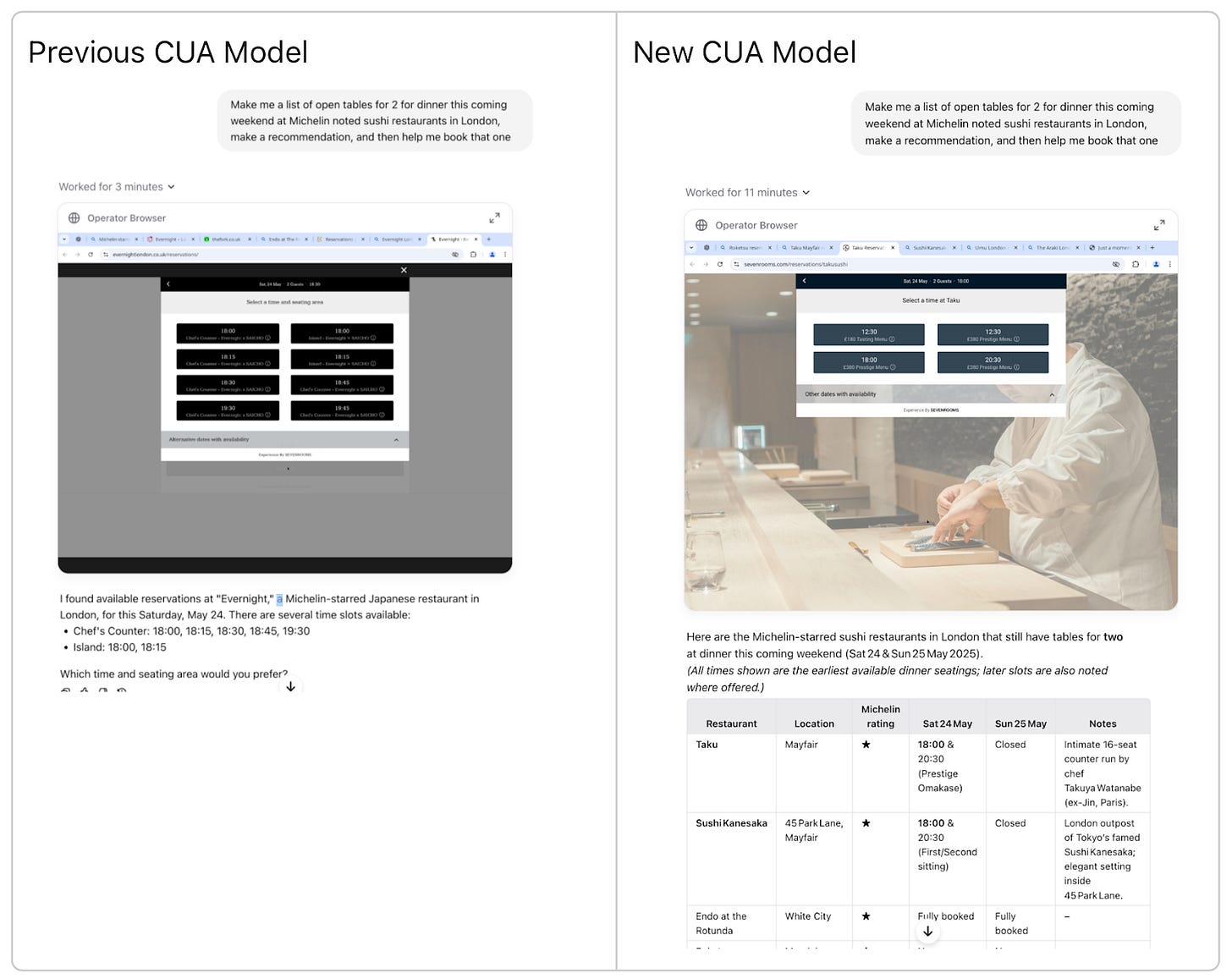 OpenAI upgraded Operator in ChatGPT with a new Computer-Using Agent (CUA) model, built on an OpenAI o3 variant. This means Operator is now more persistent and accurate when using the browser, so it gets more tasks done successfully. You’ll also notice responses are clearer, more thorough, and better structured overall.