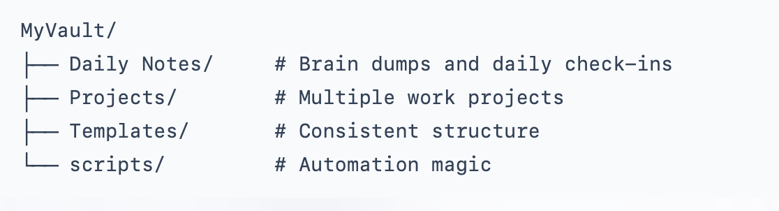 You can drop notes anywhere, because there are no strict rules. These files are regular .md (just folders and text), and Claude will help organize them later.