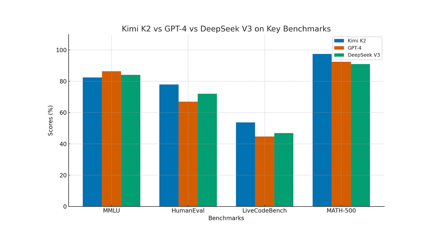 Let’s talk about results. If Kimi K2 wants to compete with models like GPT-4, Claude, or Gemini, its benchmarks have to hold up. And they do.