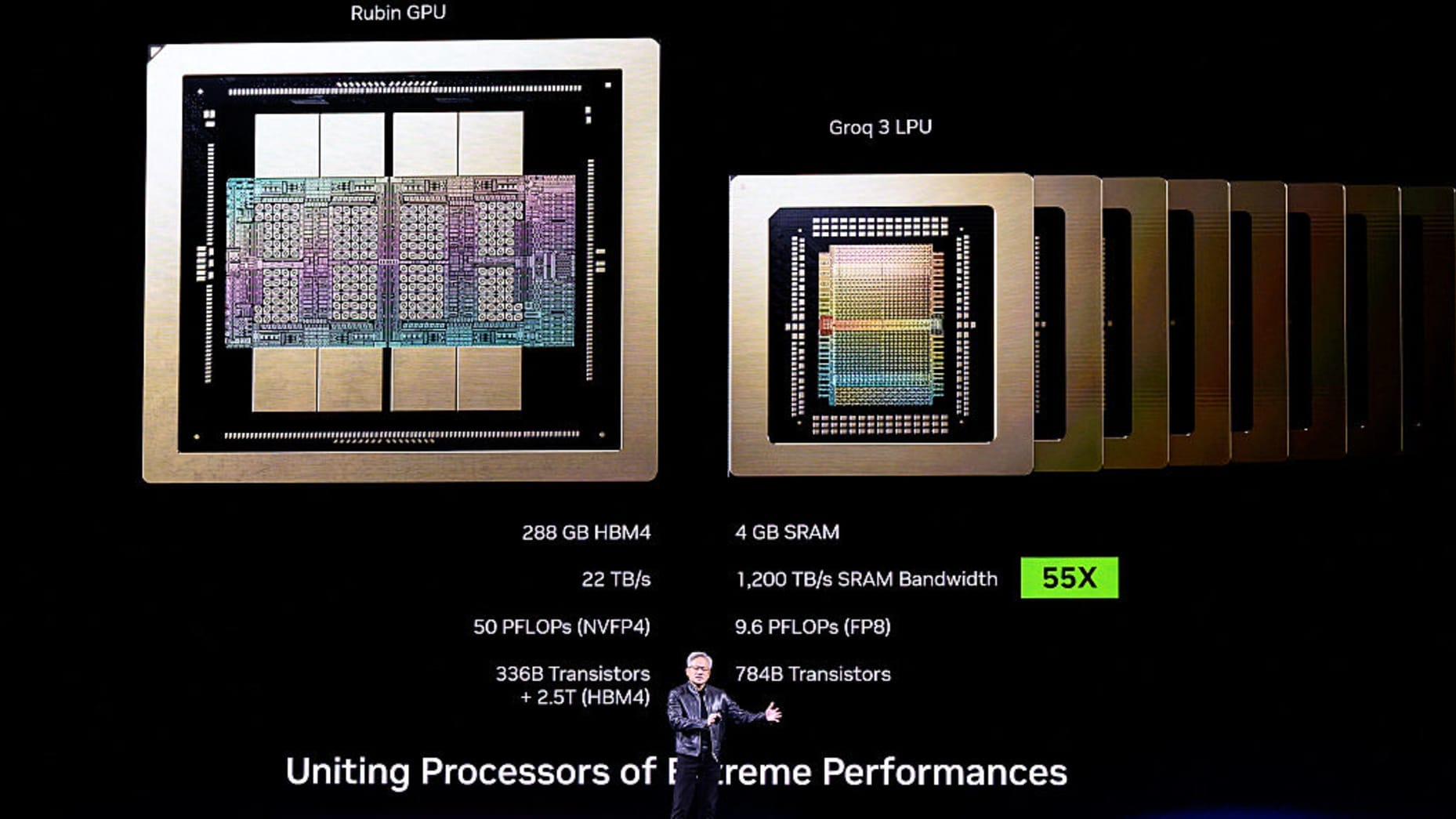 Groq 3 LPU — Huang unveiled the Nvidia Groq 3 Language Processing Unit — the company’s first chip from the startup it mostly acquired through a $20 billion asset purchase in December. The Groq 3 LPX rack holds 256 LPUs, designed to sit beside the Vera Rubin rack-scale system.