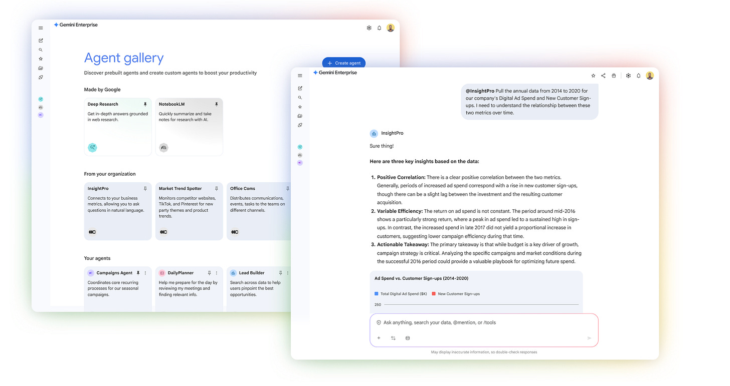 At its core, Gemini Enterprise is powered by Google’s most advanced Gemini models, which provide reasoning, summarization, and decision-making across connected systems. Keeping up with the trend, Google lets non-IT people analyze information and orchestrate agents to automate processes.