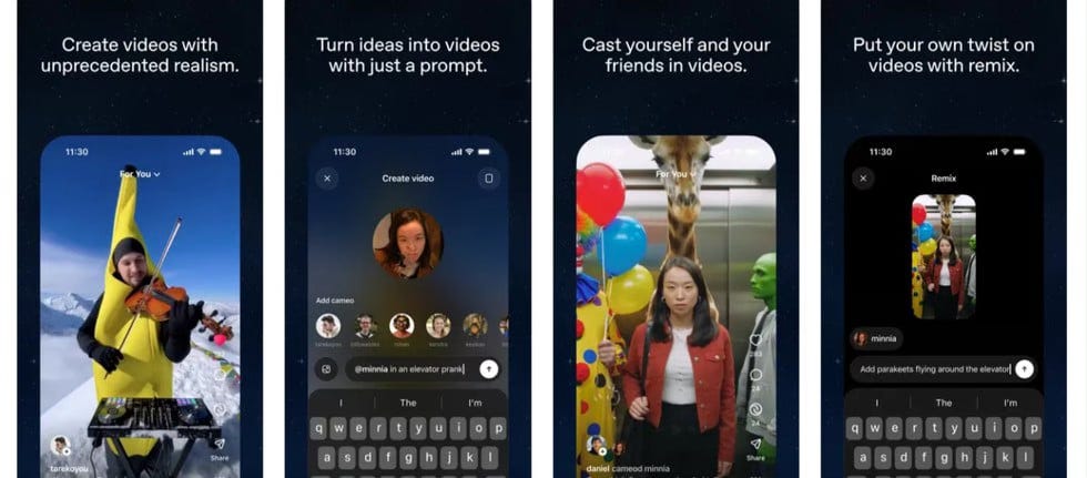 It also has a “remix” feature that works like TikTok’s stitches or duets, but instead of recording yourself, you simply tweak the original prompt and Sora re-generates the video in a new setting.