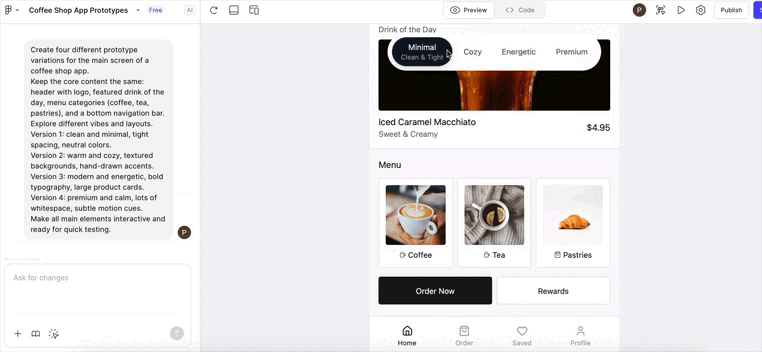 Instead of spending hours building components by hand, designers can just describe what they want, and AI tools will generate several interactive prototypes.